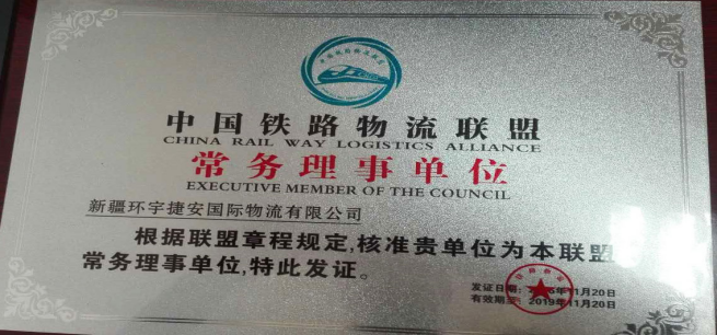 新疆環(huán)宇捷安國際物流有限公司在此次會議上成功當(dāng)選為常務(wù)理事單位。