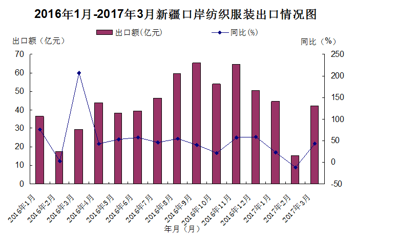 2017年一季度新疆口岸紡織服裝出口大幅增長