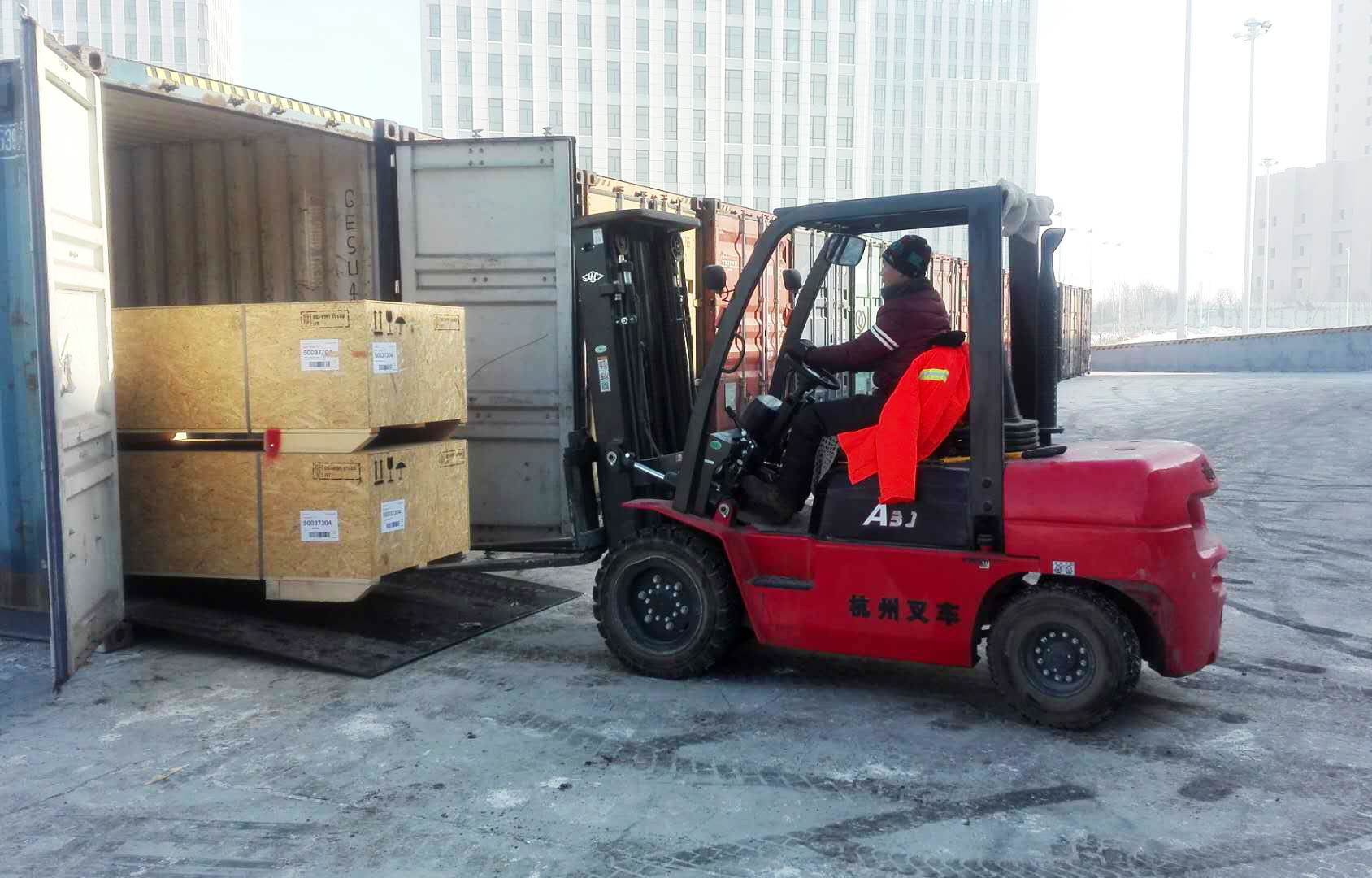 出口機械設(shè)備集裝箱順利裝運